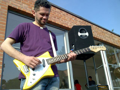Michele performing with the Art Critics Orchestra and Andreas Reiter Raabe, Mies van der Rohe Haus, Berlin, May 2009. Ph: Andreas Schalegel